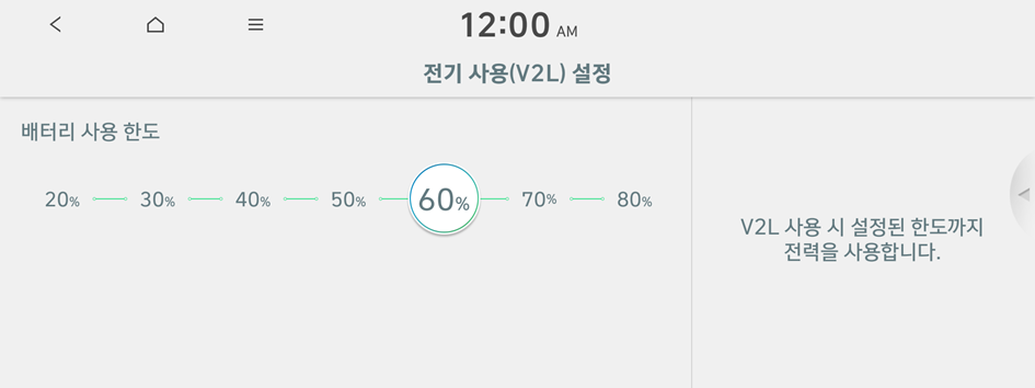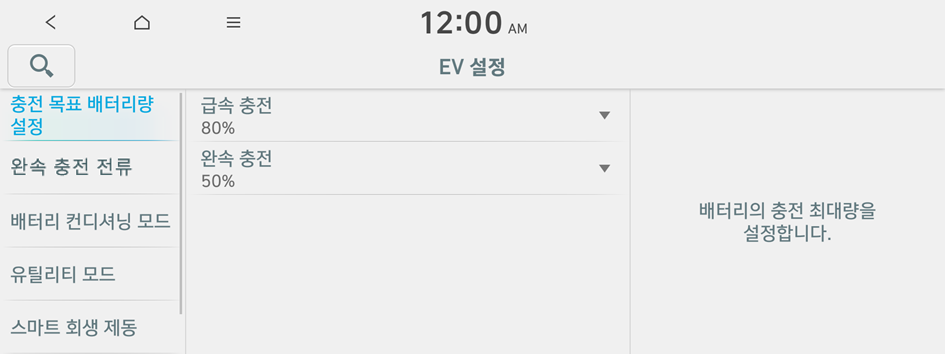 EV 차량에서 사용할 수 있는 편의 기능을 설정할 수 있습니다.