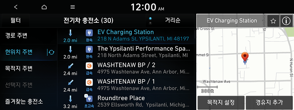 전기 주행 가능 거리를 확인하고, 필요한 경우 주변 충전소를 검색하여 길 찾기 기능을 이용할 수 있습니다.