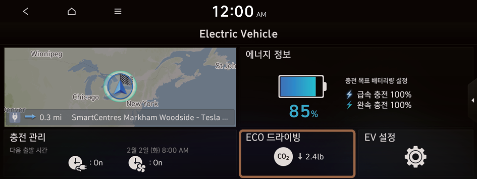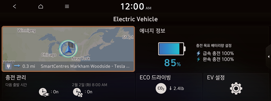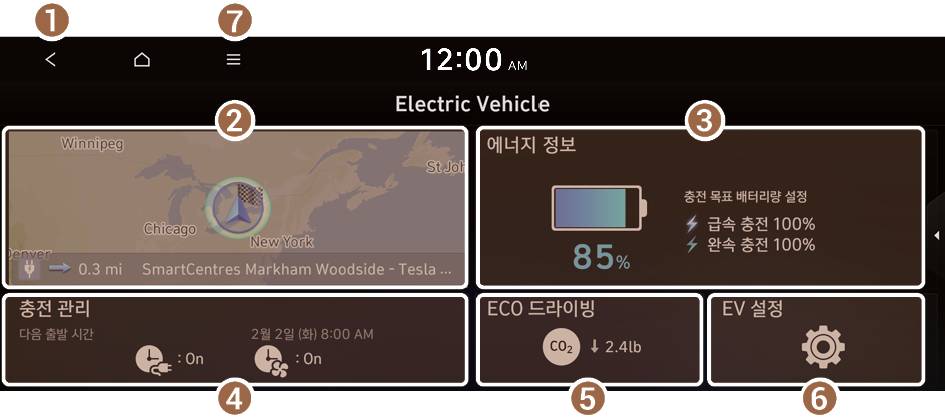 Electric Vehicle 화면에서 사용할 수 있는 기능과 표시되는 정보는 다음과 같습니다.