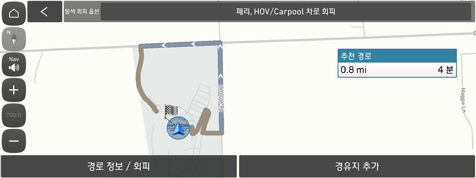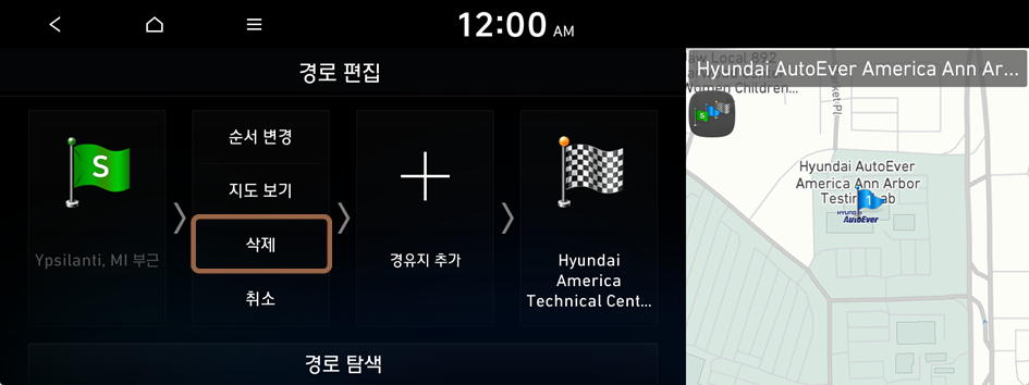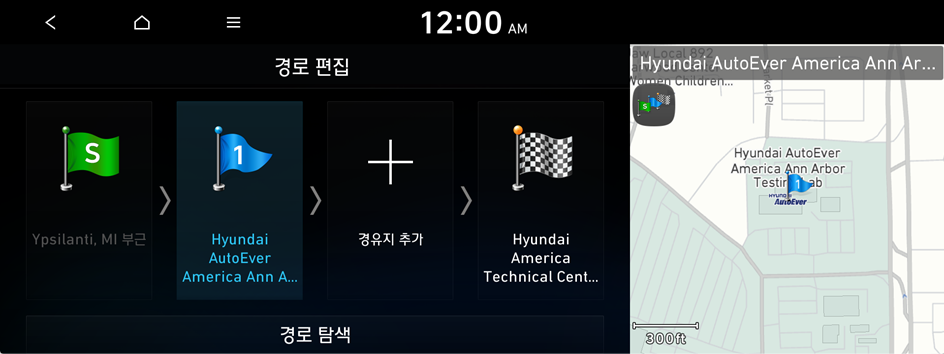 목적지로 가는 길의 경유지를 편집할 수 있습니다. 경유지는 두 곳까지 추가할 수 있습니다.