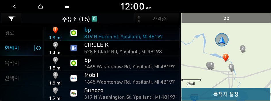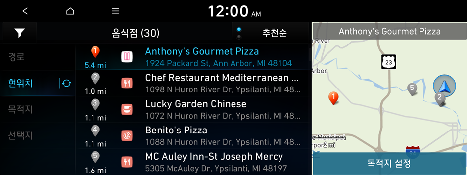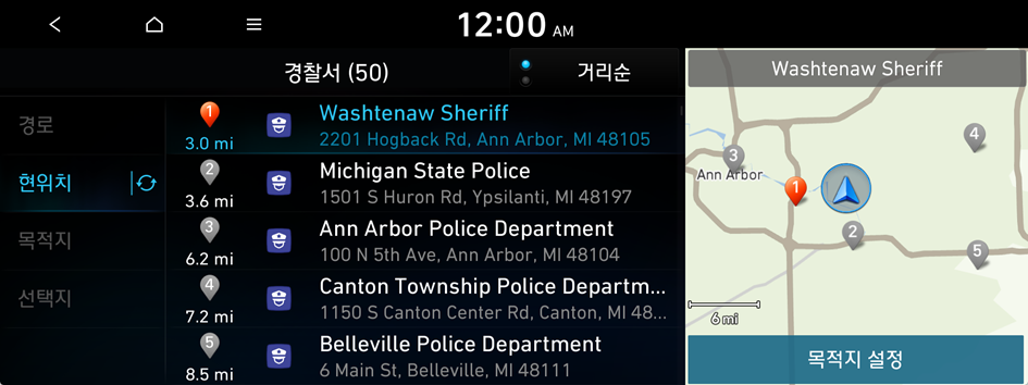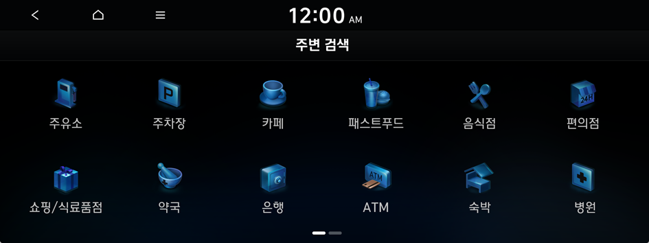 카테고리별로 주변 시설을 검색해 목적지를 설정할 수 있습니다.