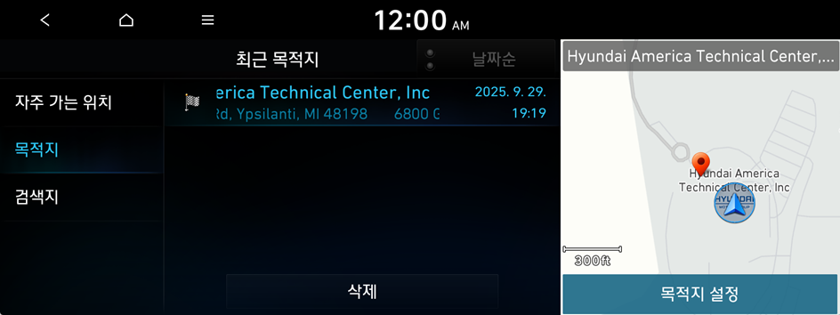 최근에 경로를 탐색한 목적지 목록이 나타납니다.
