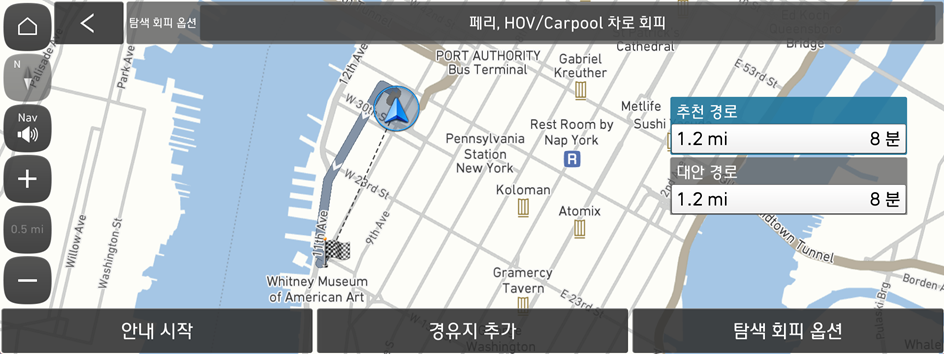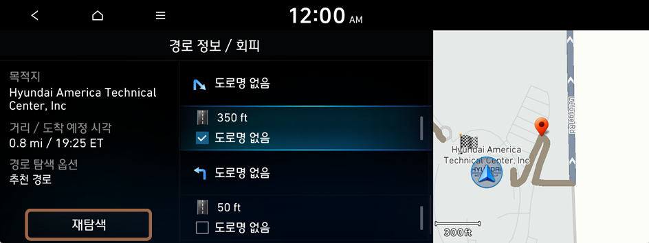 경로를 탐색하는 옵션을 변경해 경로를 다시 탐색할 수 있습니다.