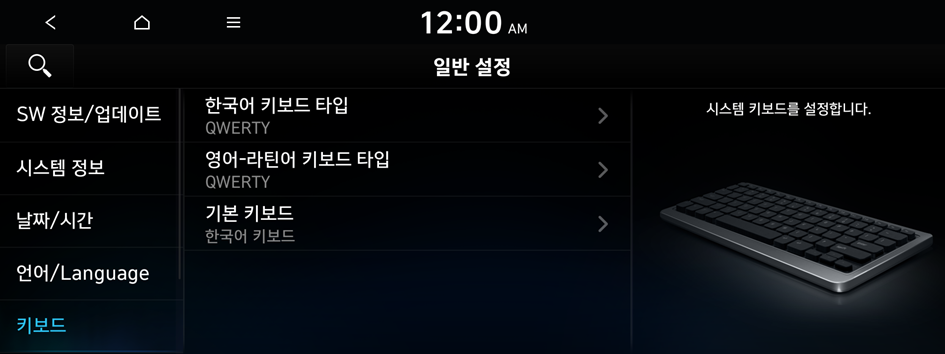시스템에서 문자 입력 시 사용할 키보드 형태를 언어별로 설정할 수 있습니다.