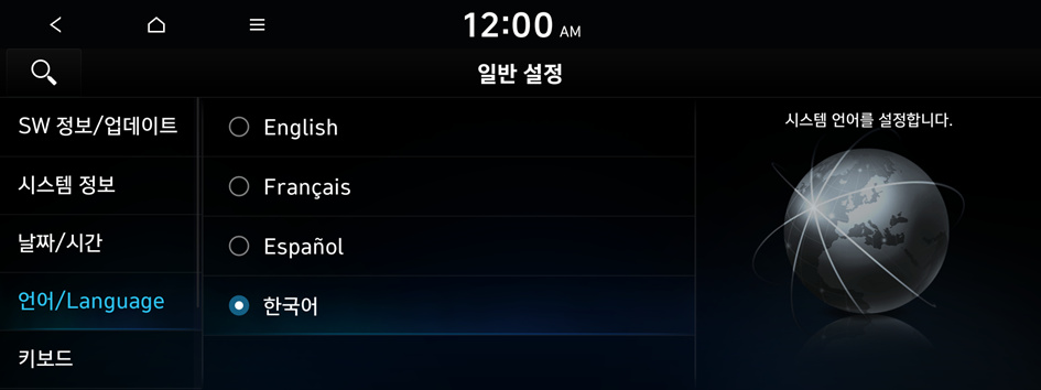 시스템 화면에 표시할 언어를 설정할 수 있습니다.