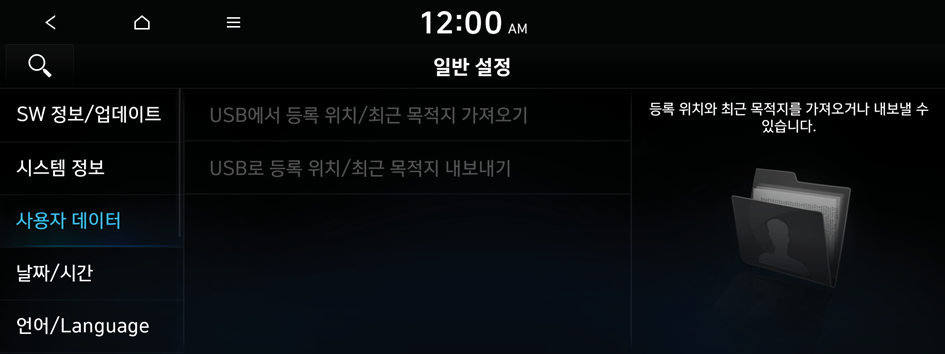 USB 저장 장치에 저장된 등록 위치 및 목적지 정보를 시스템으로 가져올 수 있습니다.