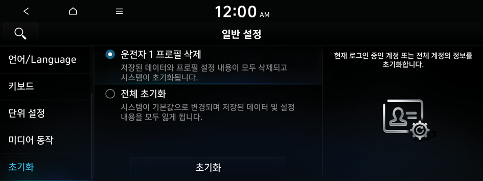 시스템의 사용 환경 설정을 초기화할 수 있습니다.