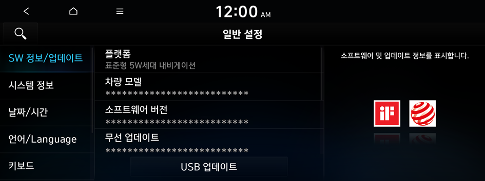 시스템 화면에 표시할 거리 및 차량 속도 단위를 선택할 수 있습니다.