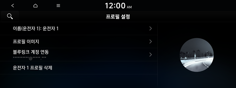 사용자 초기 설정 후 운전자별 프로필 항목을 추가로 설정할 수 있습니다.