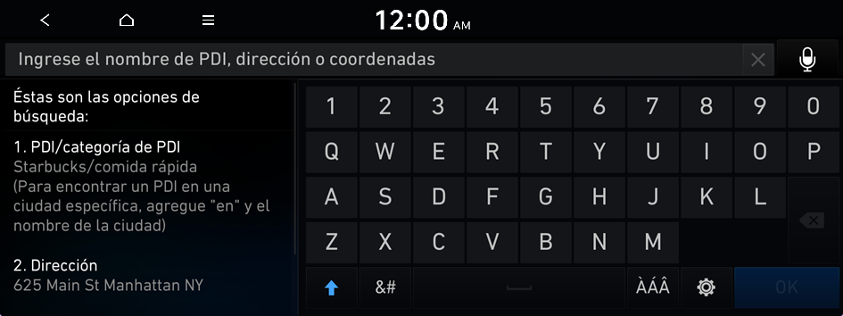Puede usar el sistema de navegación convenientemente a través de varias funciones en la pantalla del Menú Navegación.