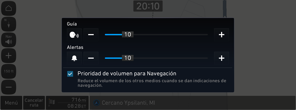 Puede ajustar el volumen de navegación o el sonido de advertencia del GPS.