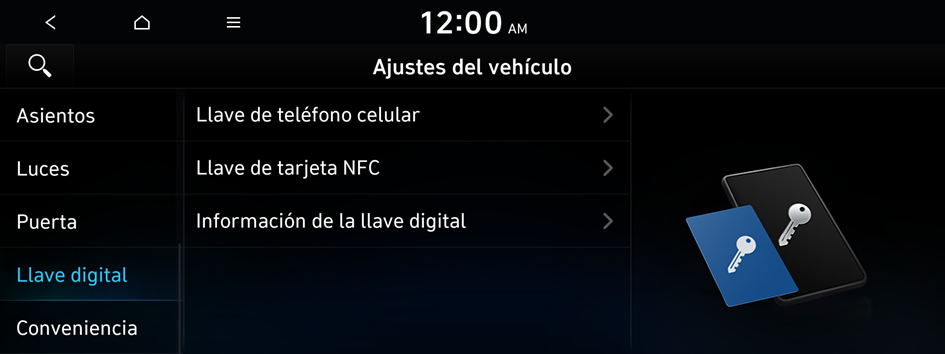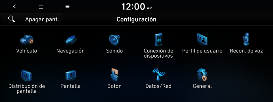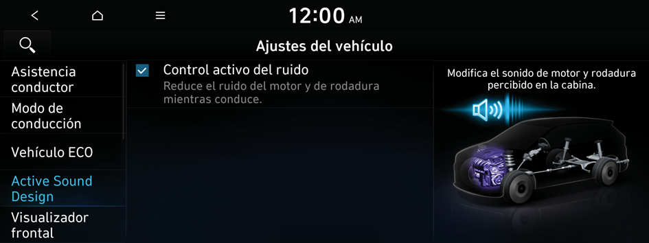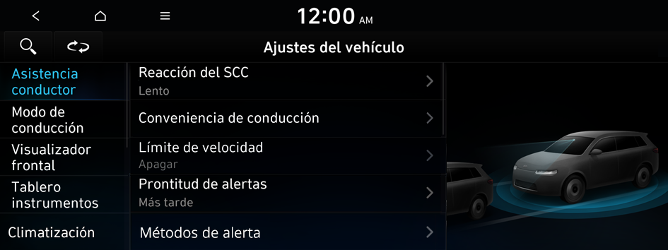 e ingrese una palabra clave para buscar un elemento de ajuste. También puede buscar un elemento de ajuste por voz.Puede configurar para utilizar varios sistemas que ayuden al conductor para la seguridad.