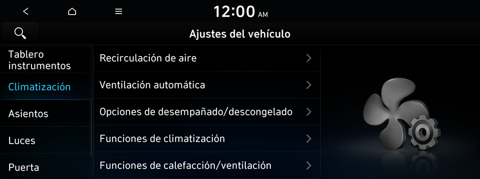 Puede establecer o cambiar los ajustes del sistema de climatización.