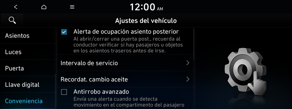 Puede establecer que se muestre una alerta cuando se detecta un movimiento dentro del vehículo y este está cerrado.