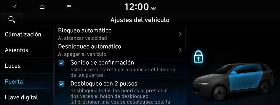 Puede configurar el tiempo para bloquear automáticamente todas las puertas.