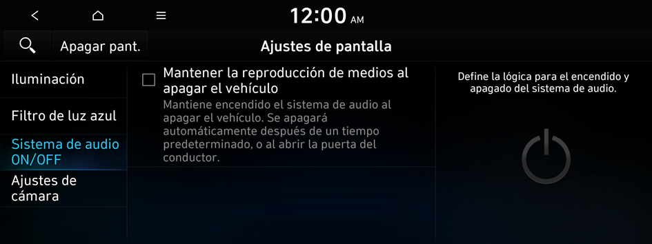 Puede configurarlo de manera que se mantenga la alimentación del sistema cuando el vehículo se apaga.