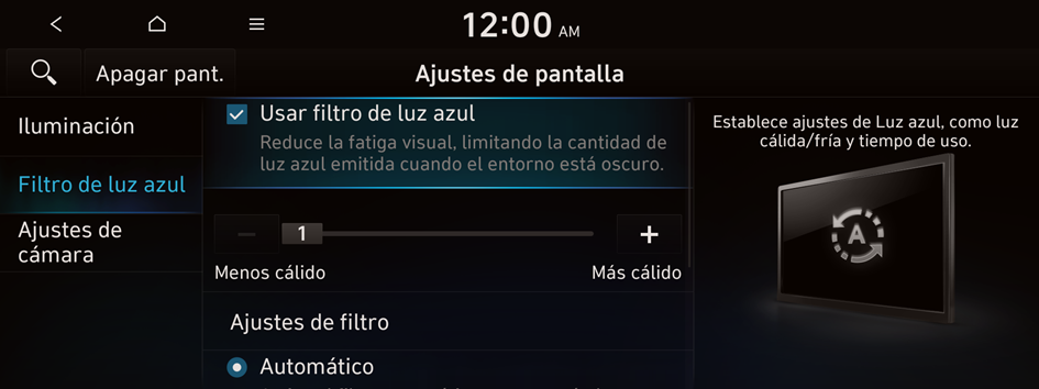 Active o desactive el filtro de luz azul.