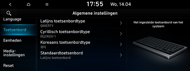 - Druk op [SETUP] > [Algemeen] > [Toetsenbord].