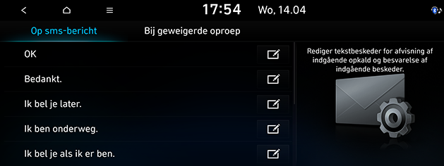 - U kunt het gewenste bericht selecteren in [Op sms-bericht] of [Bij geweigerde oproep].