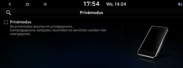U kunt de privacymodus instellen om uw persoonlijke gegevens te beschermen. Contacten, belhistoriek, favorieten en berichten worden niet weergegeven als de privacymodus geactiveerd is.