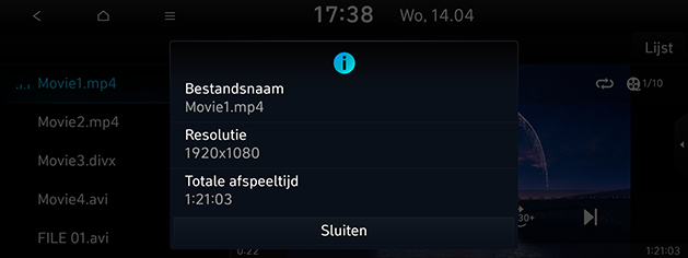 Deze functie geeft de naam, resolutie en afspeeltijd informatie van het bestand weer.
