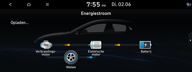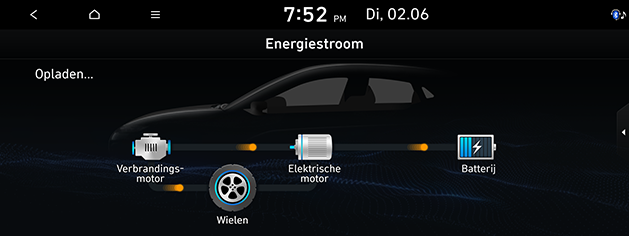 De vertragingsenergie van het remmen wordt gebruikt om de accu op te laden.