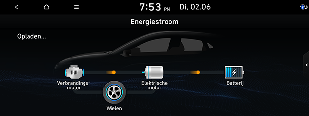 Terwijl het voertuig zich in de standby-stand bevindt, wordt het vermogen van de motor gebruikt voor het opladen van de accu.