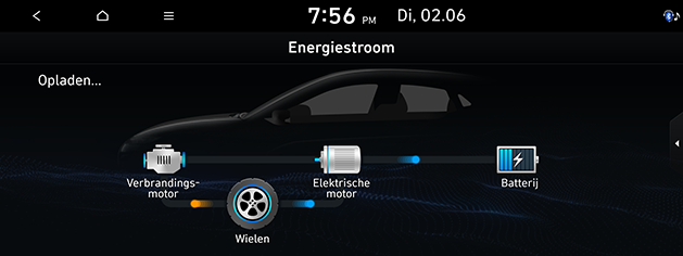 Het vermogen van de motor wordt gebruikt om het voertuig te besturen en de accu wordt tegelijkertijd opgeladen.