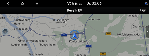 1 [Bereik EV]: geeft de afstand van mogelijk rijden op de kaart weer.