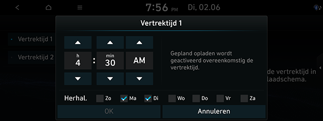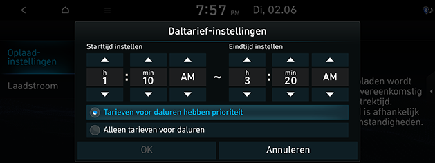 Wanneer u gepland laadt, kunt u de instellingen voor de daluren instellen.