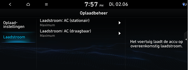Druk op [PHEV] > [Oplaadbeheer] > [Laadstroom].