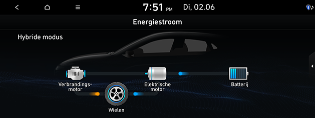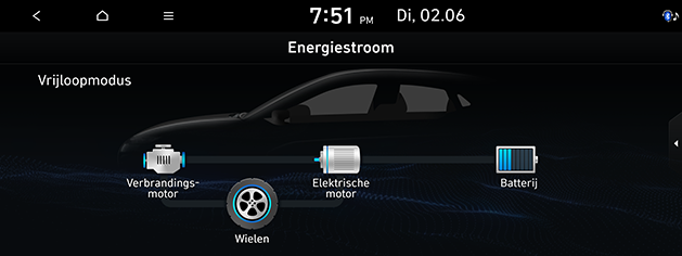 Het hybride voertuig maakt op flexibele wijze gebruik van het elektrische systeem en de stroom van de motor overeenkomstig de efficiënte rijcondities.