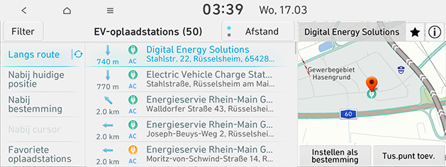 - Druk op [NAV] > [POI-categorie] > [EV-oplaadstations].