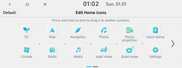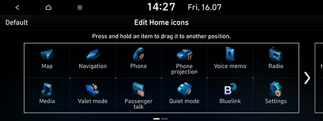 Scroll the HOME screen sideways to move to all the items of the system menu.
