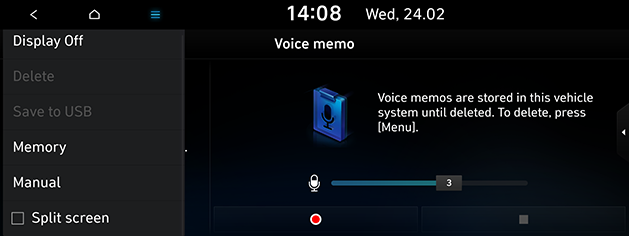 - [Voice memo]: Moves to the [Voice memo] menu.