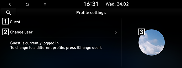 - [Profile image]: You can select the profile image that will be applied to the system among three images.