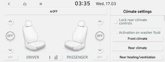 Press [Rear heating/ventilation] to set the rear seat heating/ventilation. |