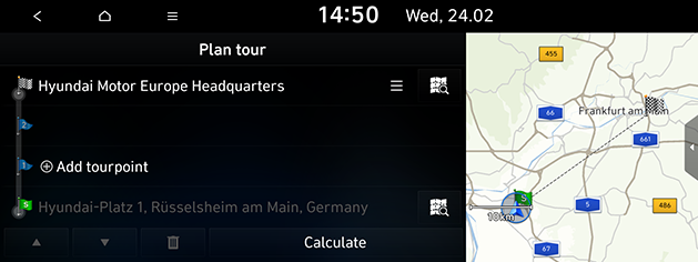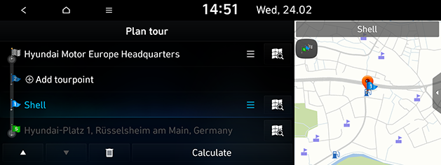 The planned tour allows you to travel through the searched routes by editing the current route. Tourpoints can be added/deleted/edited and the order can be changed.