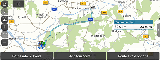 - [Route info. / Avoid]: Displays the route information and selects the street to avoid.