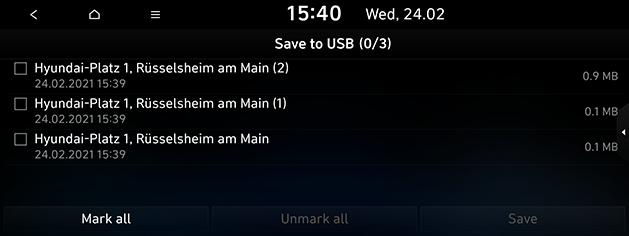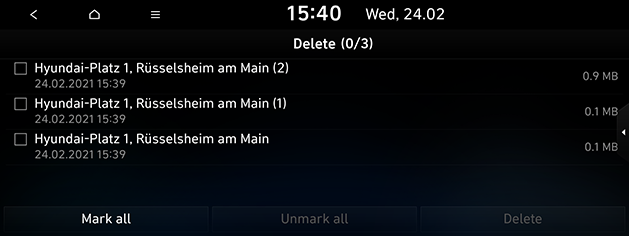 - Check the storage space of the head unit. For more details refer to the “Memory” part.