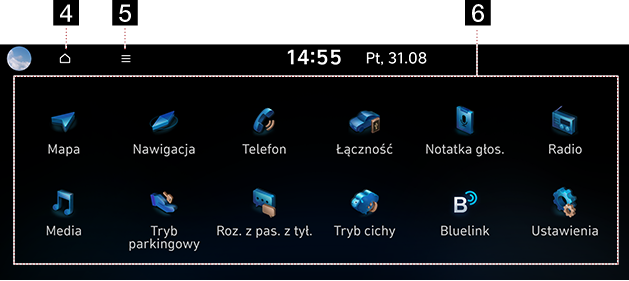 - [Bluelink (Jeśli jest w wyposażeniu)]: Przejście do menu [Bluelink].