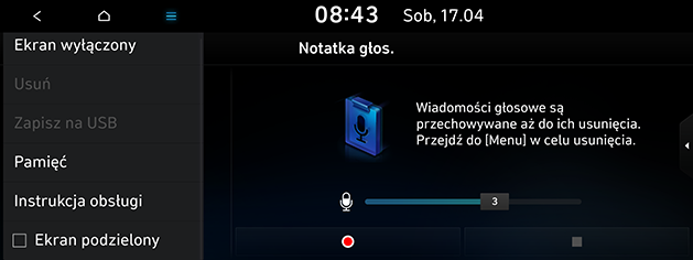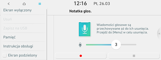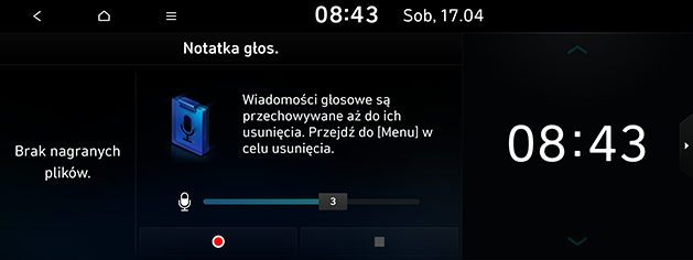 - [Notatka głos.]: Przejście do menu [Notatka głos.].