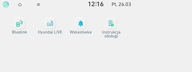 - [Hyundai LIVE]: Przejście do menu [Hyundai LIVE].