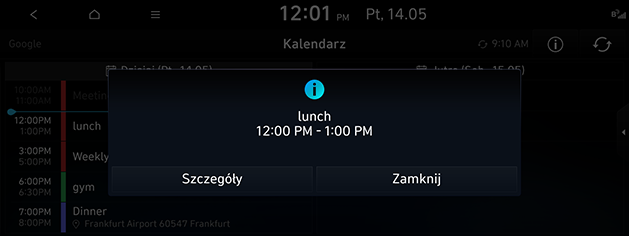 Poprzez aplikację Bluelink na smartfony następuje połączenie z kalendarzem (Google, iCloud), którego klient używa jako pierwszego.
