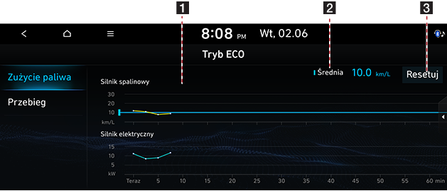 Naciśnij [PHEV] > [Tryb ECO] > [Zużycie paliwa].