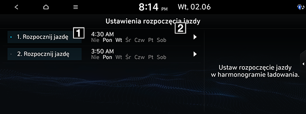 - Naciśnij [PHEV] > [Zarz. łądow. Akumulatora] > [Ładowanie wg harmonogramu] > [Następny odjazd].