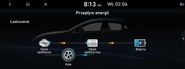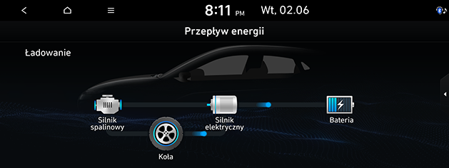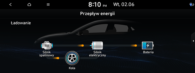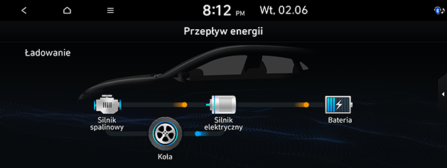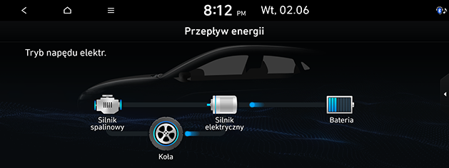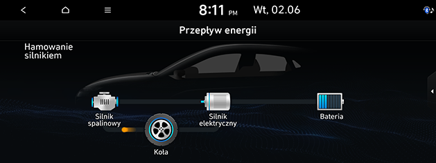 Wyświetla stan zasilania elektrycznego dla każdego podzespołu odpowiednio do sposobu jazdy samochodu.