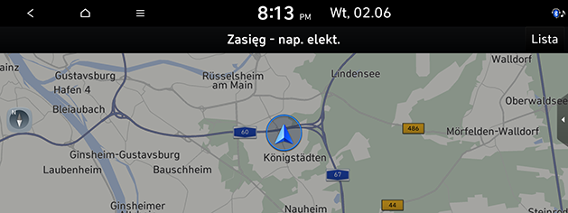 1 [Zasięg - nap. elekt.]: Wyświetla zasięg możliwej jazdy na mapie.
