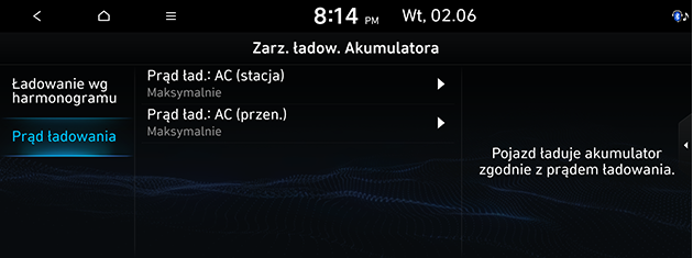 Naciśnij [PHEV] > [Zarz. łądow. Akumulatora] > [Prąd ładowania].