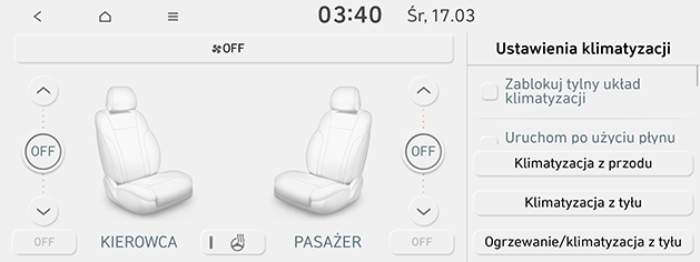Ta funkcja umożliwia ustawienie ogrzewanie i nawiew foteli.